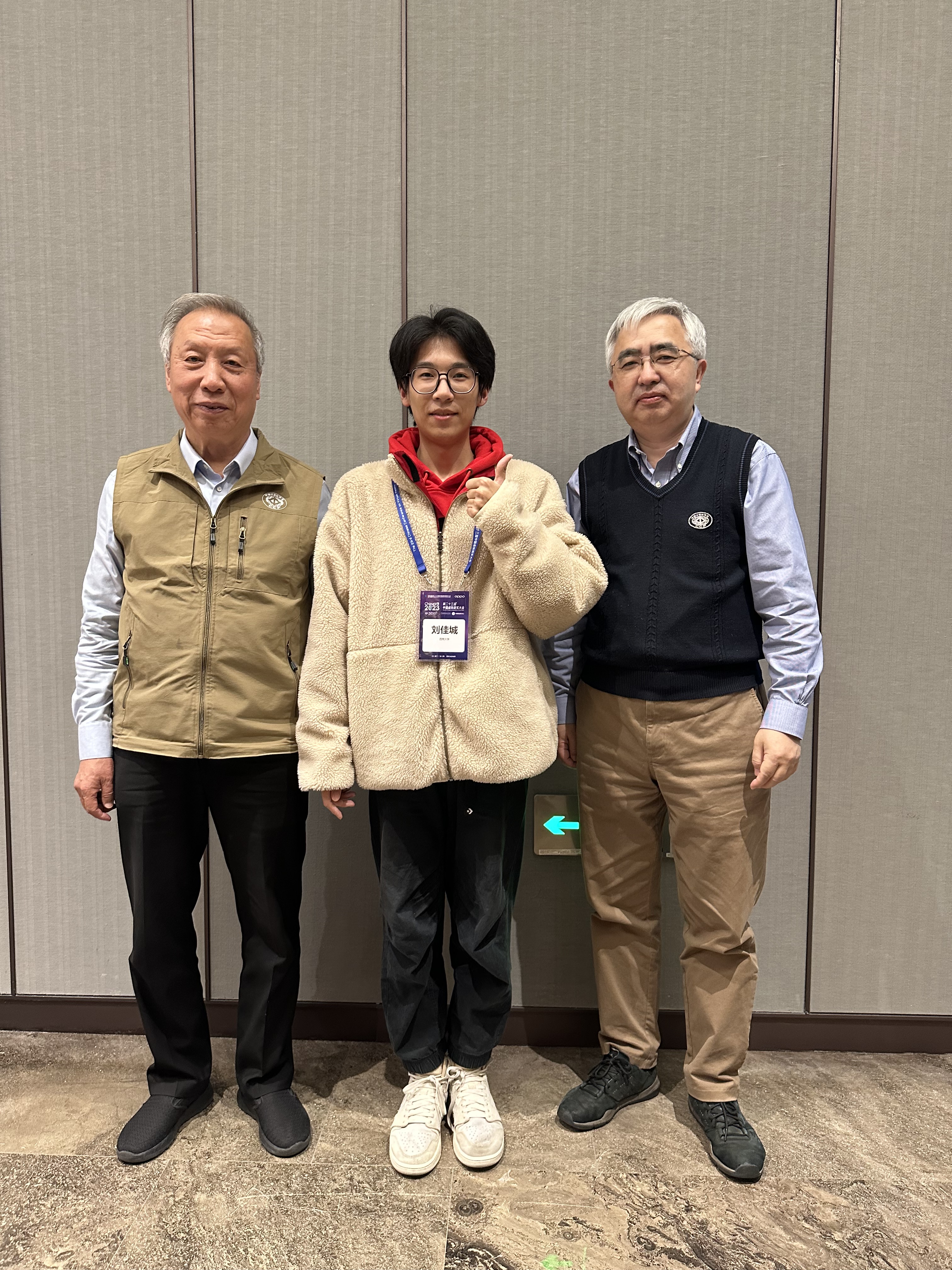 A memorable photo taken at the CCVR 2023 Awards Dinner after winning the National First Prize, celebrating with Academician Zhao and Professor Chen.