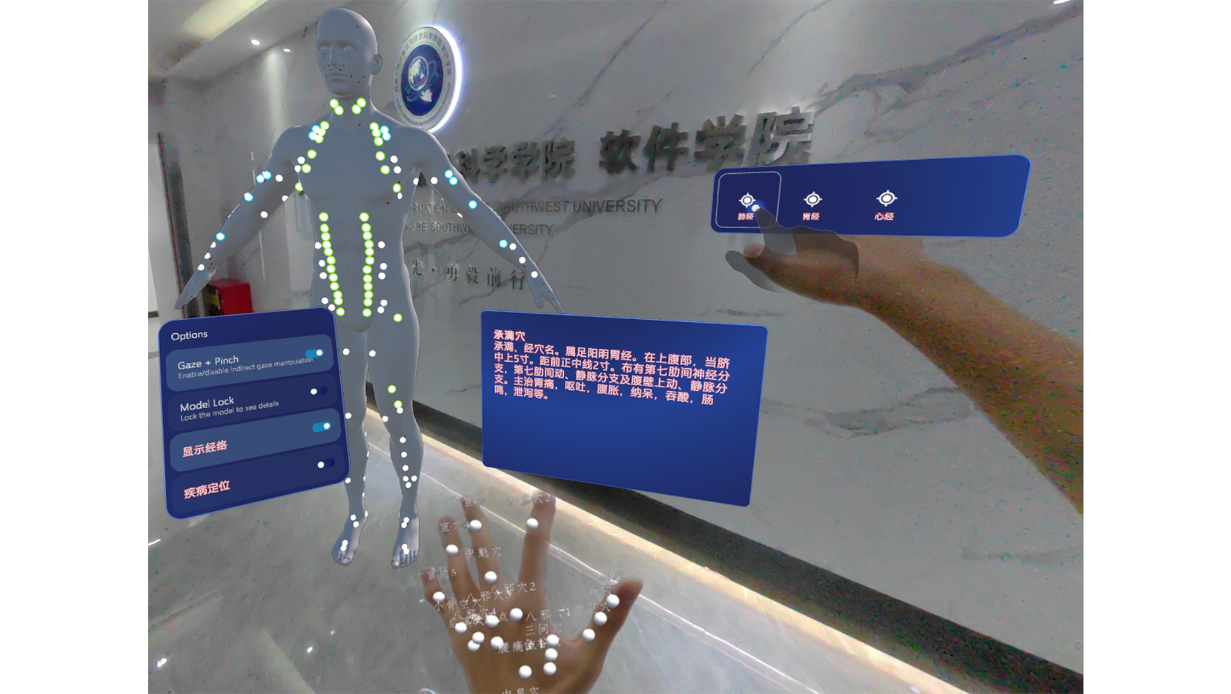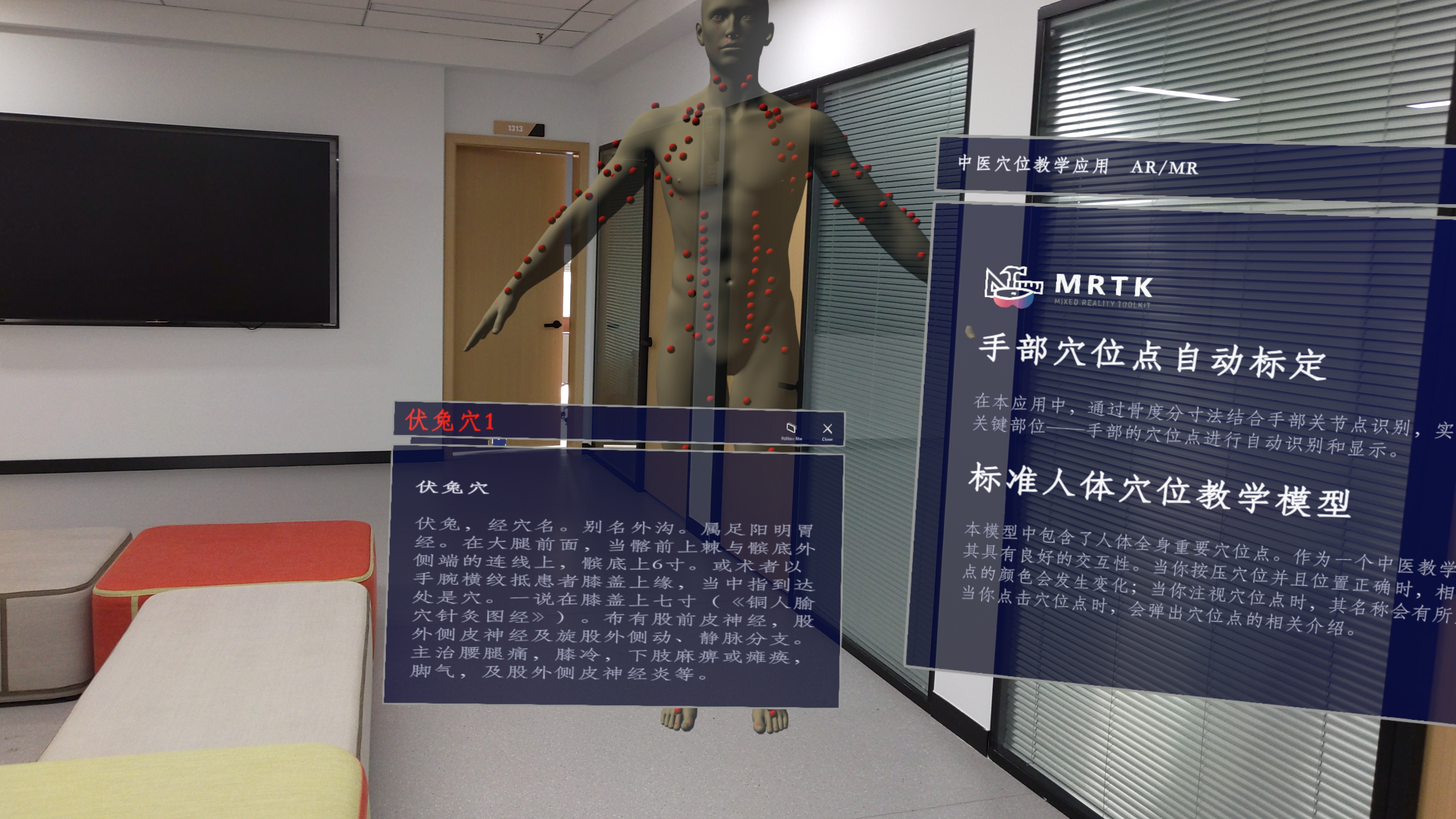 Technical approach and effectiveness demonstration of TCM acupoint knowledge teaching, applicable to PICO 4 Pro and Hololens 2 platforms.